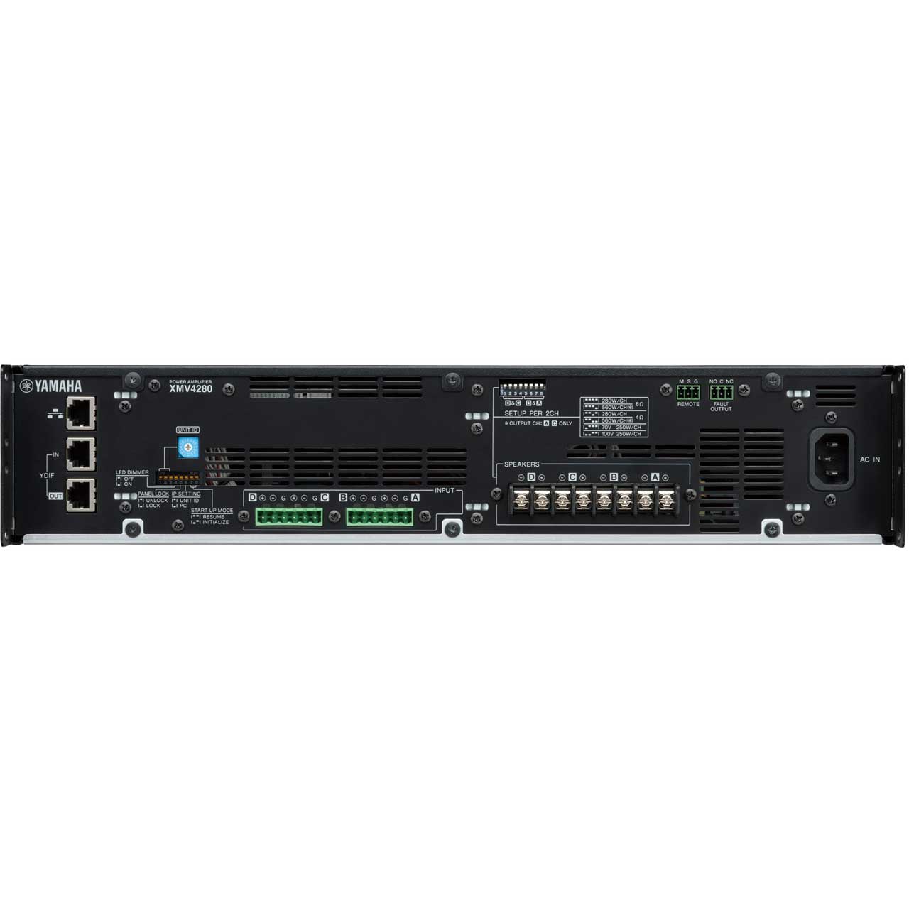 Yamaha XMV-4280 is a 4 Channel x 140 Watts 4/8Ω YDIF Digital Input Power Amplifier. The XMV Series multi-channel power amplifiers combine Class-D efficiency with features designed specifically to benefit commercial installation sound systems. The Series is comprised of 8 different models with varying output power capabilities and flexible in/out connectivity to accommodate a wide range of installation environments.