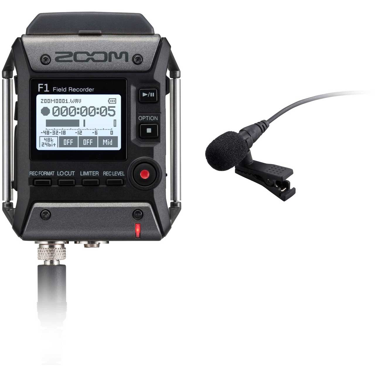 The ZOOM F1-LP field recorder and lavalier mic is the perfect solution for videographers who need to capture the nuance of every word with professional quality audio. The F1-LP comes with ZOOM's newly engineered LMF-1 lavalier mic, designed for capturing every nuance. Combined with the F1, you can record high-resolution audio up to 24 bit/96kHz, perfect for interviews, wedding vows, and more. With its minimal profile, the F1 attaches neatly on belts, waistbands, or slipped into a pocket so the recorder can be easily concealed. The LMF-1 Lavalier mic connects directly to the F1 and records to a micro SD card. By recording directly to the F1, interference or noise commonly experienced when using a wireless beltpack system is eliminated. The F1's one-touch buttons gives you easy access to record levels, limiter control, lo-cut filter and volume output. It's newly designed monochromatic LCD display ensures visibility even in bright sunlight.