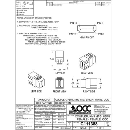 HDMI In-Line Coupler, Bright White, OCC's AKHDMI12 Keystone adapters offer a full array of data, video, and audio ports for fiber, copper, coaxial and speaker cables. Featuring snap-in accessibility and a wide arrange of multimedia options, the OCC KMJ adapter line gives customers a flexible solutio...